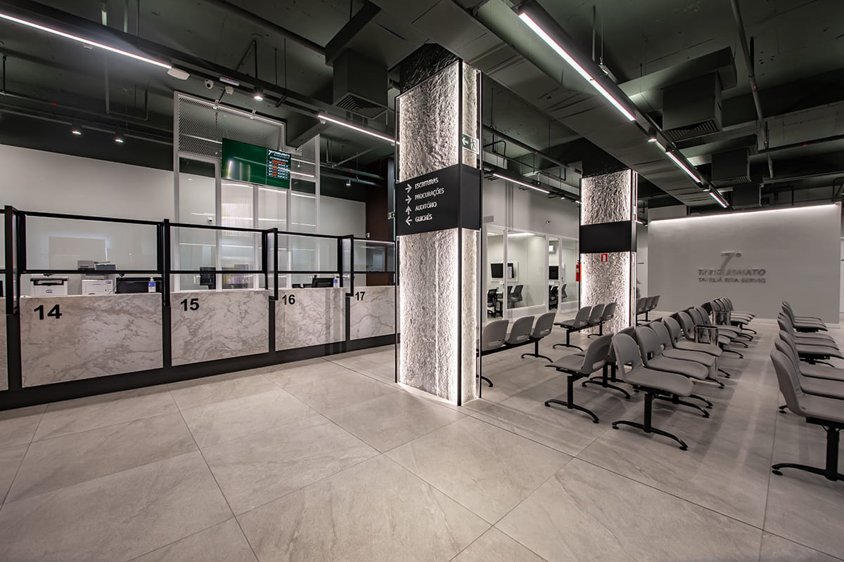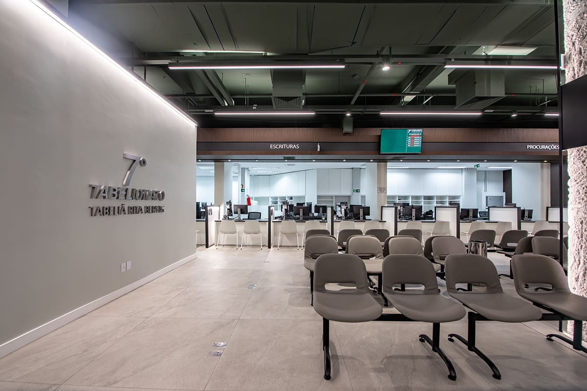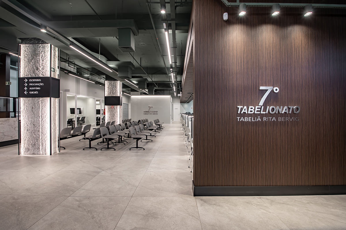 Desde fevereiro de 2021, o 7º Tabelionato de Notas de Porto Alegre está de sede nova! A nova estrutura apresenta 800m2, com um design moderno, tecnológico e totalmente sustentável.